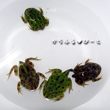 暫くの間ボールの中で待機中のカエルたちです。