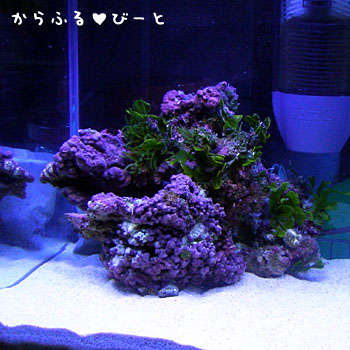 ヤフオクで入手した海草付きのライブロックでレイアウトしてみたんですが