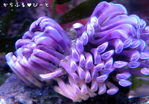 こちらは潮が引いた岩場で丸くなっていた綺麗なタテジマイソギンチャク。
