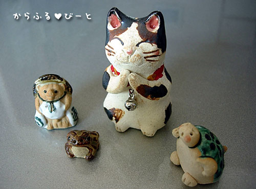 先日、見に行った信楽の陶芸村では こんなに可愛い置物を見つけました♪