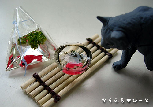 金魚を覗き込んでいるのはチョコQだかチョコエッグの