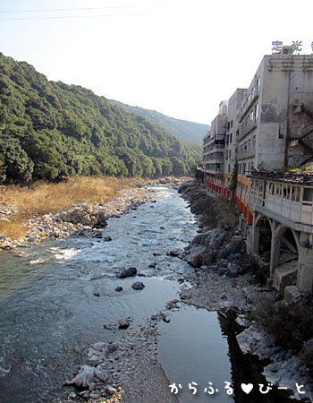 そして後を振り返ると、そこには廃墟と化した旅館の姿が・・・。