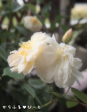 立派なピエール・ド・ロンサールの鉢植えが幾つも入荷されて来て