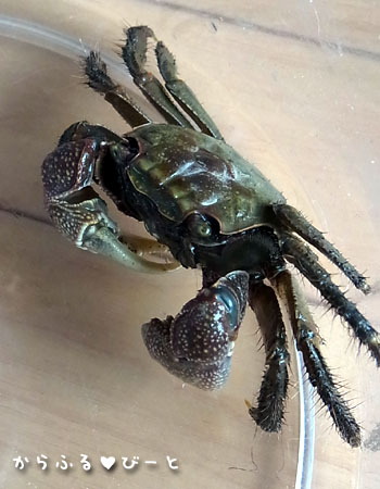 カニさんは暫くしたら川の土手に返しに行く予定です。