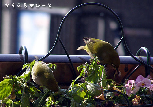窓辺にはこうやってメジロのカップル?が飛んできたり