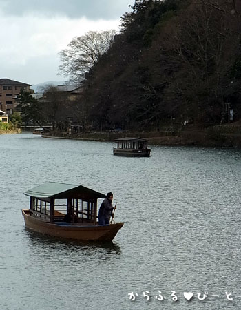 桂川を行き来するボート。