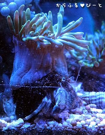 いつの間にか貝殻の上にスズナリイソギンチャクが棲みついて