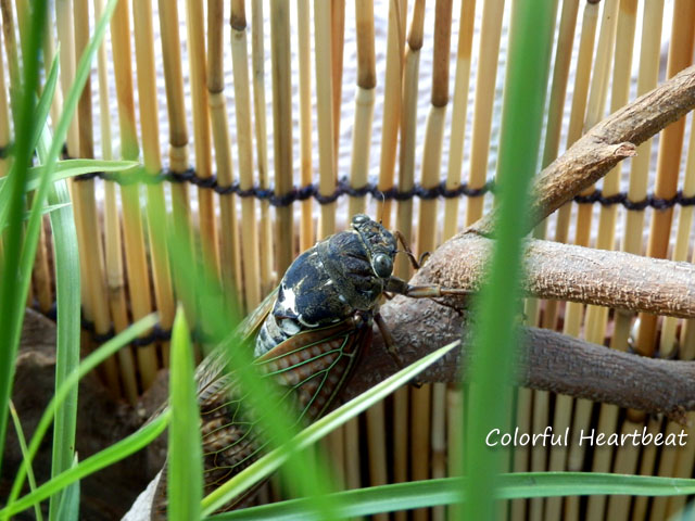 ビオトープに遊びに来てくれたアブラゼミさんです。