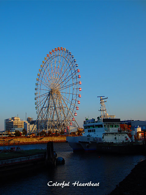 最後は中川運河から眺めた名古屋港水族館の観覧車でキマリ!!(o^-')b