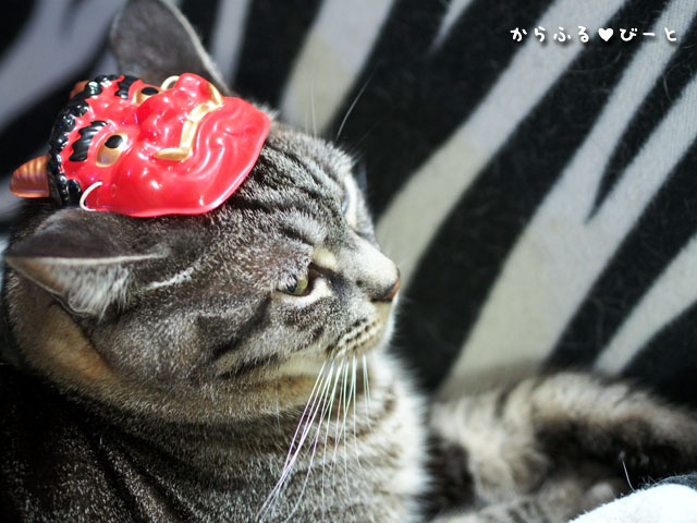 しかし!最後に頭にお面を乗せられて宇宙を見つめる目をするカゲトラ君でした。(笑)