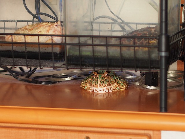 クランウェルツノガエルのグラトニーは夜の間に何度もジャンプを繰り返し