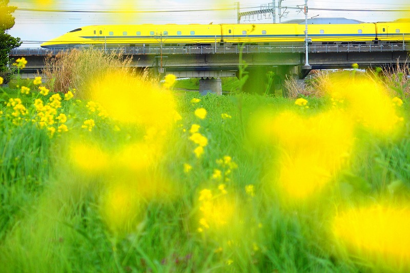 雨雲を吹き飛ばして駆け抜けていったドクターイエロー。