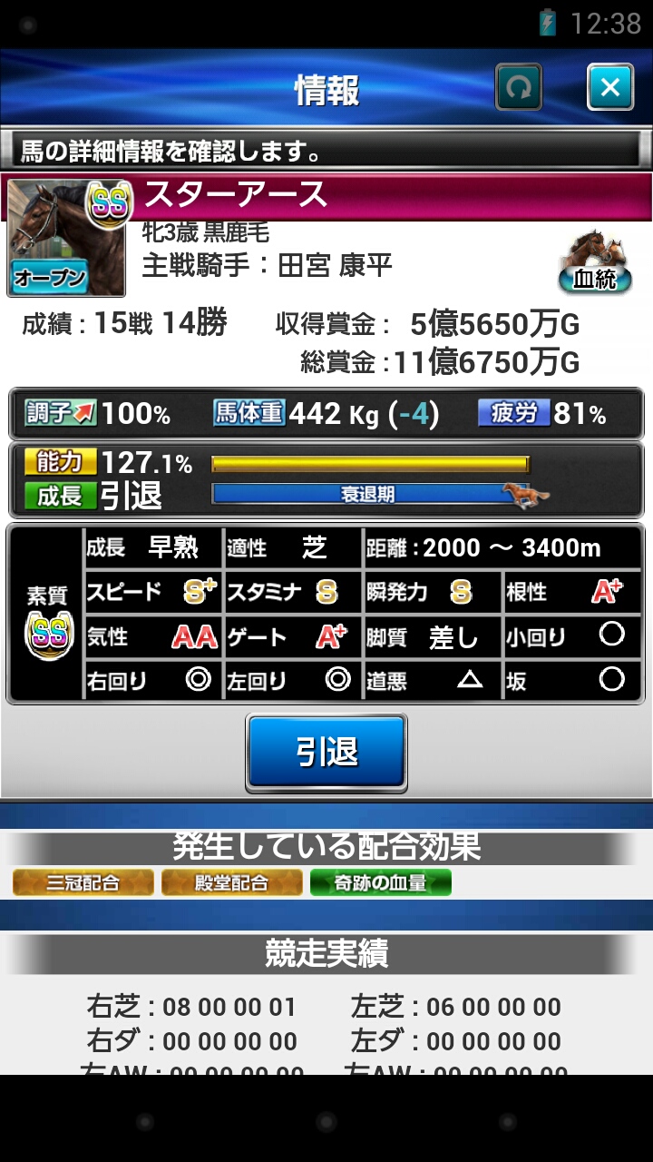 と言うよりも自分の産み出す馬のステータスがショボいって事かな。(ノ_-;)ハア…
