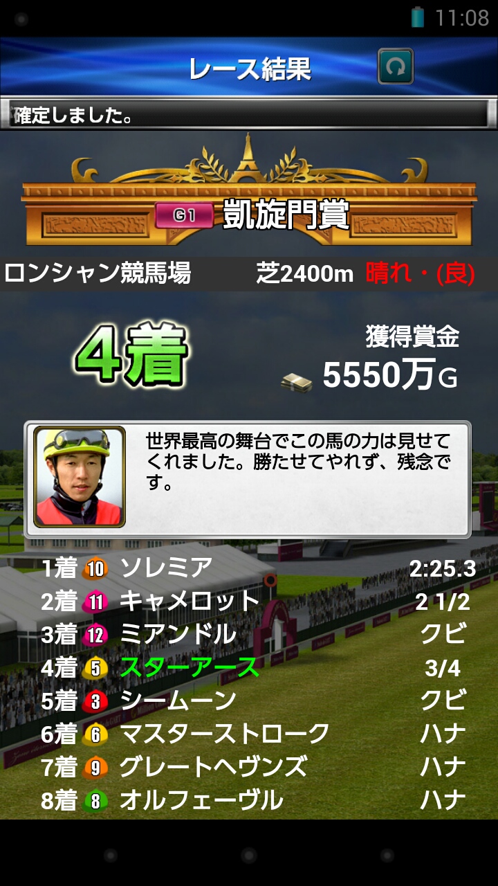 結果は4着でした。 (´・ω・`)