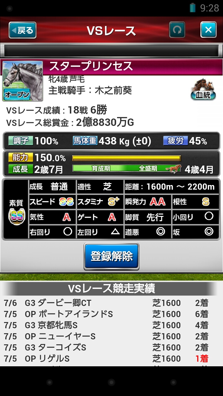 馬のステータスは余り良くなかったけど