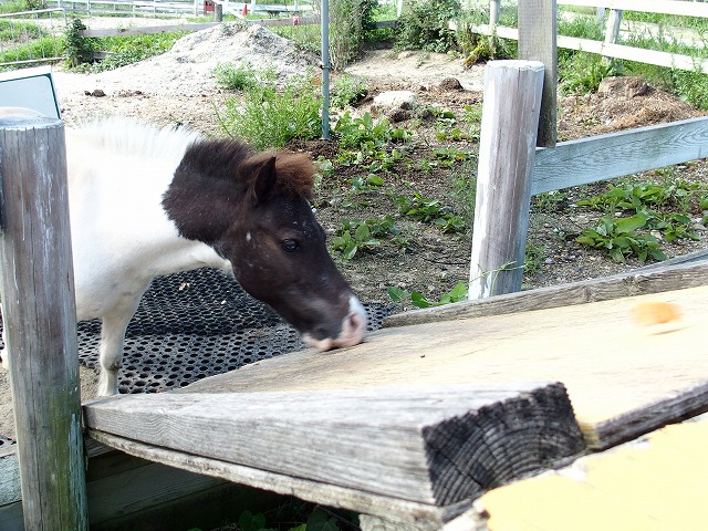 牧場の片隅に居たポニーに餌をあげたら